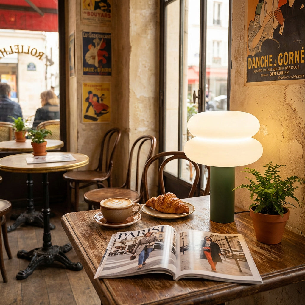 Thanks to its integrated rechargeable battery, Brioche Soleil can be freely placed on a bedside table, desk, shelf, or dining table.